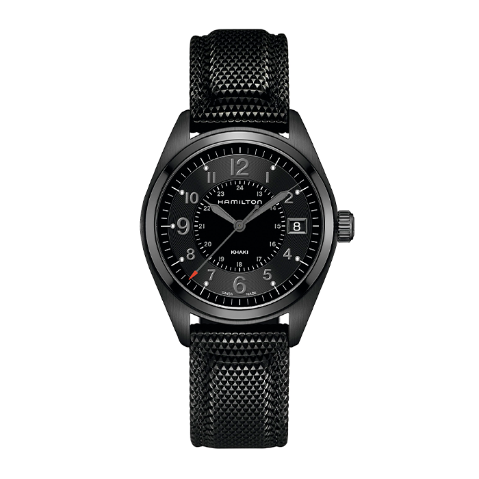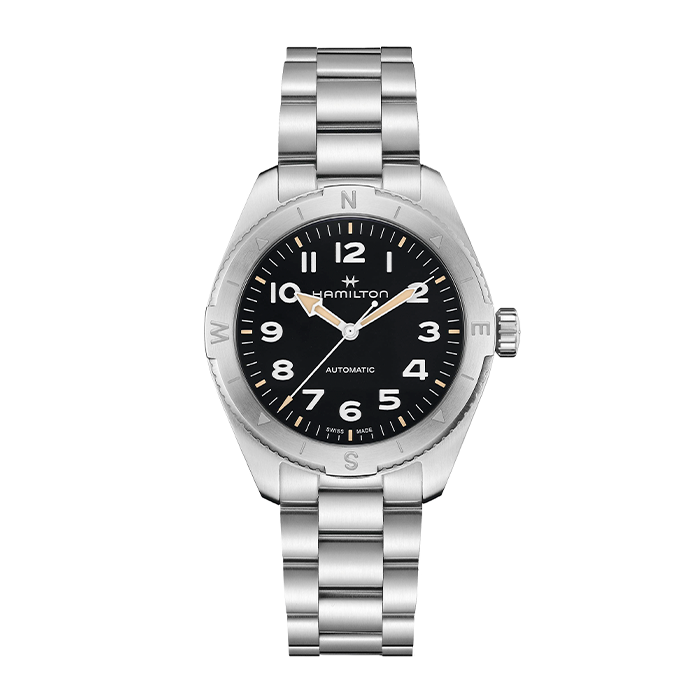 Prepárate para tus actividades al aire libre con el Khaki Field Expedition, un reloj de aventura todoterreno con un diseño de brújula que te permite proseguir la aventura con la ayuda del sol. Se alberga en una caja de acero inoxidable de 41 mm junto con un brazalete a juego, y está equipado con una corona atornillada para proteger el movimiento contra las inclemencias del tiempo. El Khaki Field Expedition, dotado de una esfera negra texturizada con revestimiento de Super-Luminova® para conseguir la máxima legibilidad, te ofrece la resistencia que necesitas.