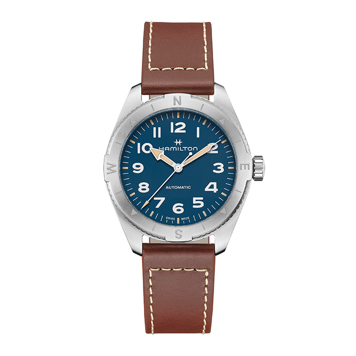 Prepárate para tus actividades al aire libre con el Khaki Field Expedition, un reloj de aventura todoterreno con un diseño de brújula que te permite proseguir la aventura con la ayuda del sol. Se alberga en una caja de acero inoxidable de 41 mm junto con una correa de piel marrón, y está equipado con una corona atornillada para proteger el movimiento contra las inclemencias del tiempo. El Khaki Field Expedition, dotado de una esfera azul texturizada con revestimiento de Super-Luminova® para conseguir la máxima legibilidad, te ofrece la resistencia que necesitas.